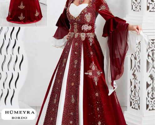 Ürün Detayı: Kırmızı Kadife Kumaş Üzeri Hint İle Süslenmiştir, İç Elbisesi Şifon ve Tesettür Bindallı Olarak da Giyilebilir.