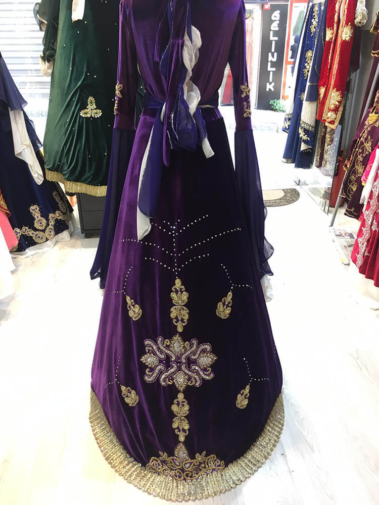 Ürün Detayı: Mor Kadife Kumaş Üzeri Hint İle Süslenmiştir, İç Elbisesi Şifon ve Tesettür Bindallı Olarak da Giyilebilir.
